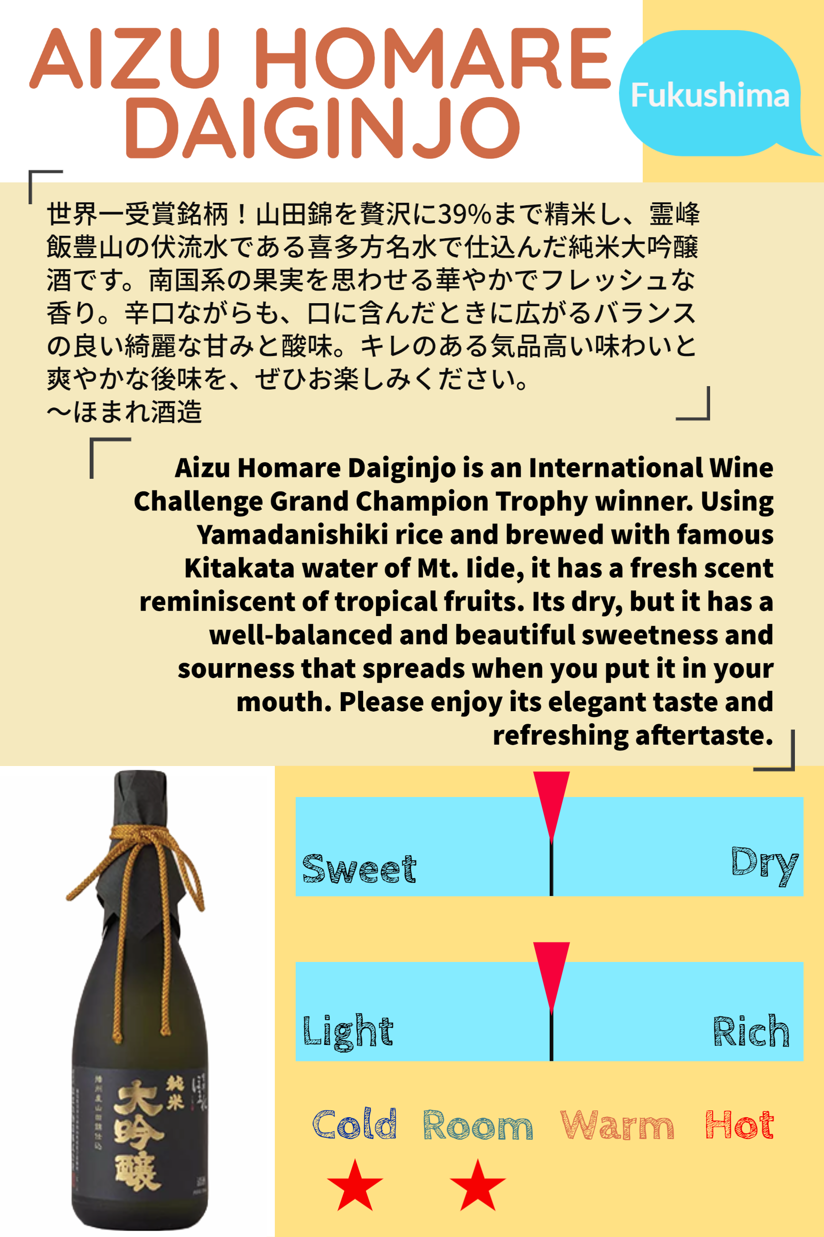 会津ほまれ 純米大吟醸 720ML 16% ALC