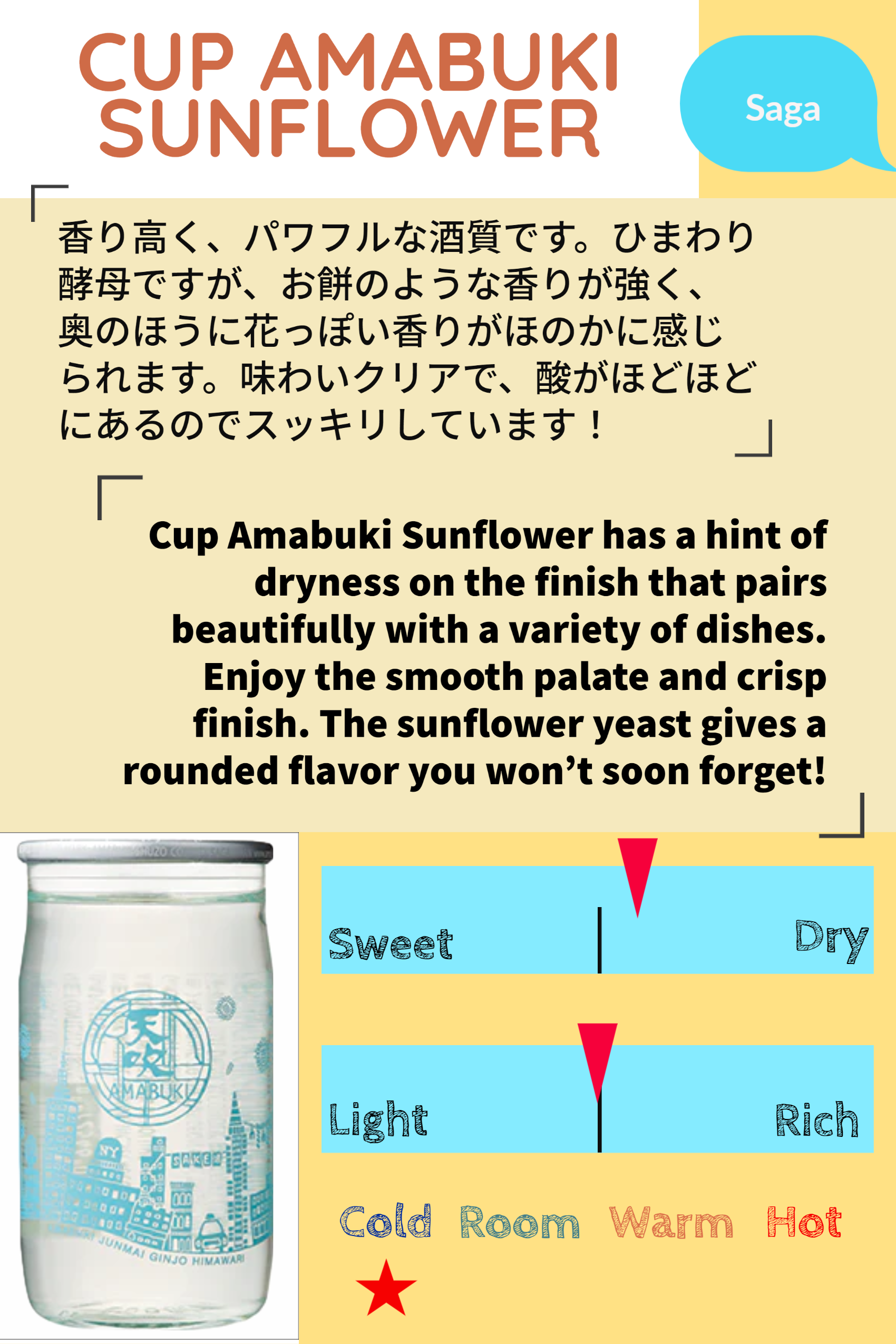 天吹ひまわり 純米吟醸 180 ML 16% ALC